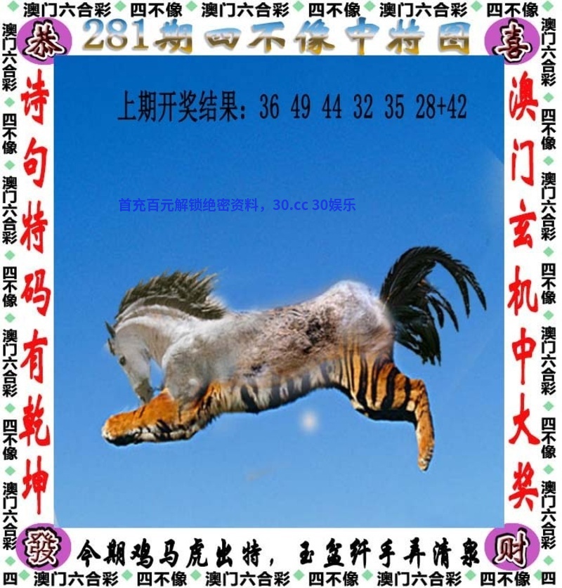 281期:【轻语解四不像】 【本期七肖】鸡马虎兔猴狗羊 |
